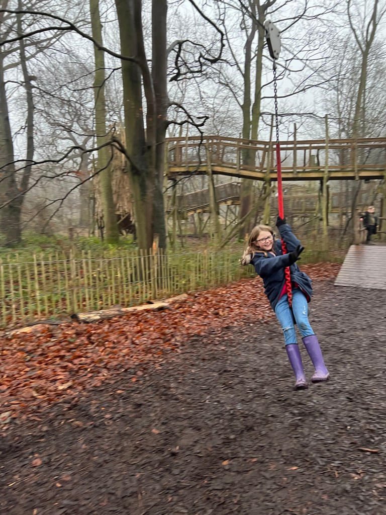 We decided to book our time slot for 4pm so that it would be getting dark when we visited.The ticket is a timed entry for the house but allows you to enter the grounds at any time. We arrived earlier and had a visit to Sklelf Island and the Adventure Playground. As Adventure Playgrounds go, this one is pretty amazing. Rope bridges, swings, slides and zip lines, you could loose your child for hours. Skelf Island is also right next door to the Boathouse cafe so hot drinks for the adults and playtime for the kids.!