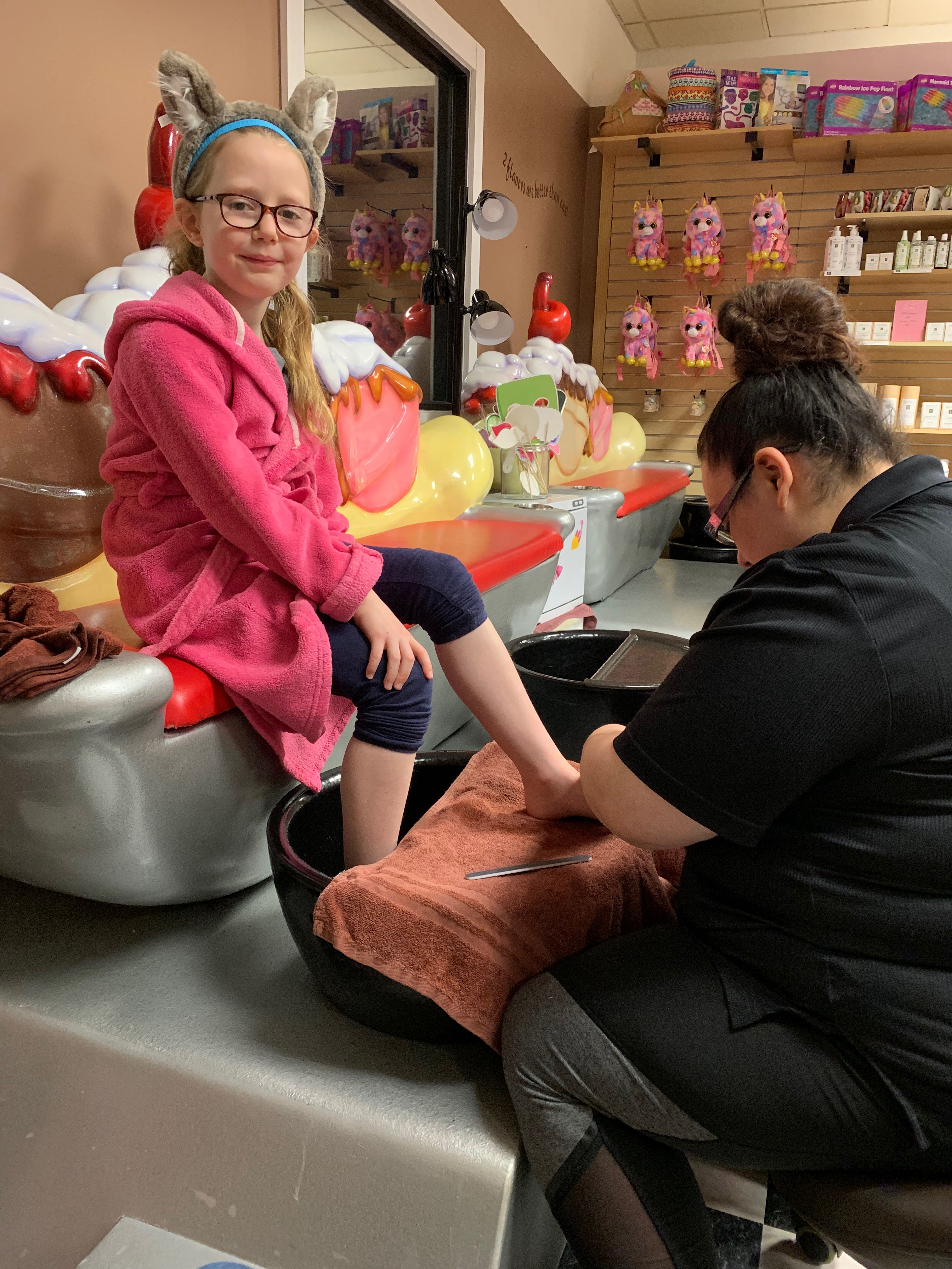 The hotel has an ice creamed themed spa where Pip got a pedicure. She was given a little robe to wear and had a full foot massage and pedicure.