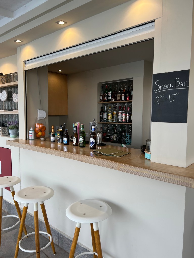 The hotel has a small heated pool with a number of sun beds. A bar and a seating area next to reception and the breakfast room. It’s a great set up for when you want an apartment rather than a hotel but still with the option of catered breakfast.