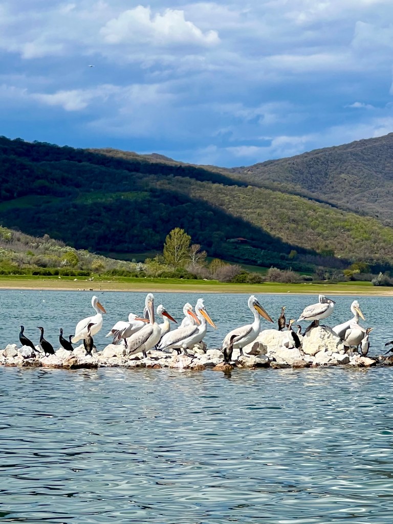 We searched day trip options from Thessaloniki and let Pip pick something she wanted to do. She chose a day trip to lake Kirkini as there was mention of horse riding. The trip was booked through Get Your Guide with Ammon Express and was a fantastic day out. Our stops included a Lake Kirkini driving safari and boat trip to see the birds, coffee at an amazing cafe with animal, a buffalo farm, a dessert shop, horse riding in the olive groves and lunch at an old train station who specialised in buffalo meat. This area of Macedonia is close to the Bulgarian border and very green, their main industry is agriculture and they grow all sorts of fruit and vegetables here as well as farming buffalo.
