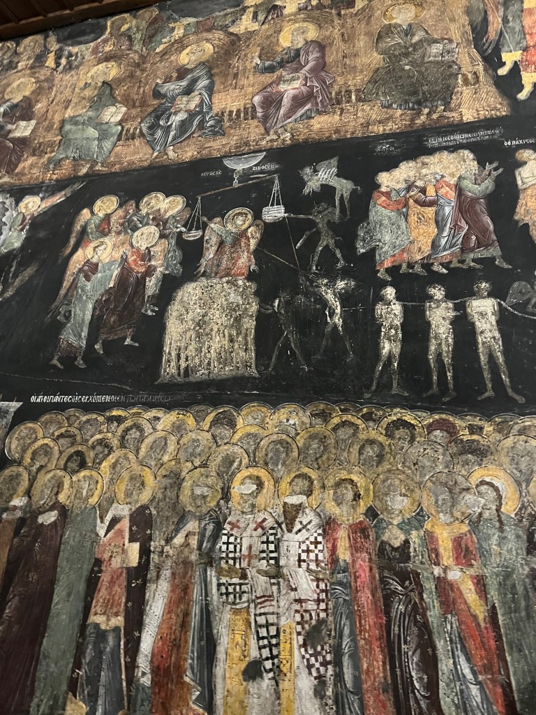 This morning tour took us to 3 of the bigger monasteries, more amazing viewpoints and The old Chapel of Doupiani. Again our guide was very informative. We had time in each of the monasteries to look around at our own pace and interestingly they all are very different inside and each have a very different feel. Varlaam has a new museum which is fascinating and shows some of the history of the monasteries and religious artefacts. Each of the monasteries has it’s own chapel which beautifully decorated in Eastern Orthodox style.