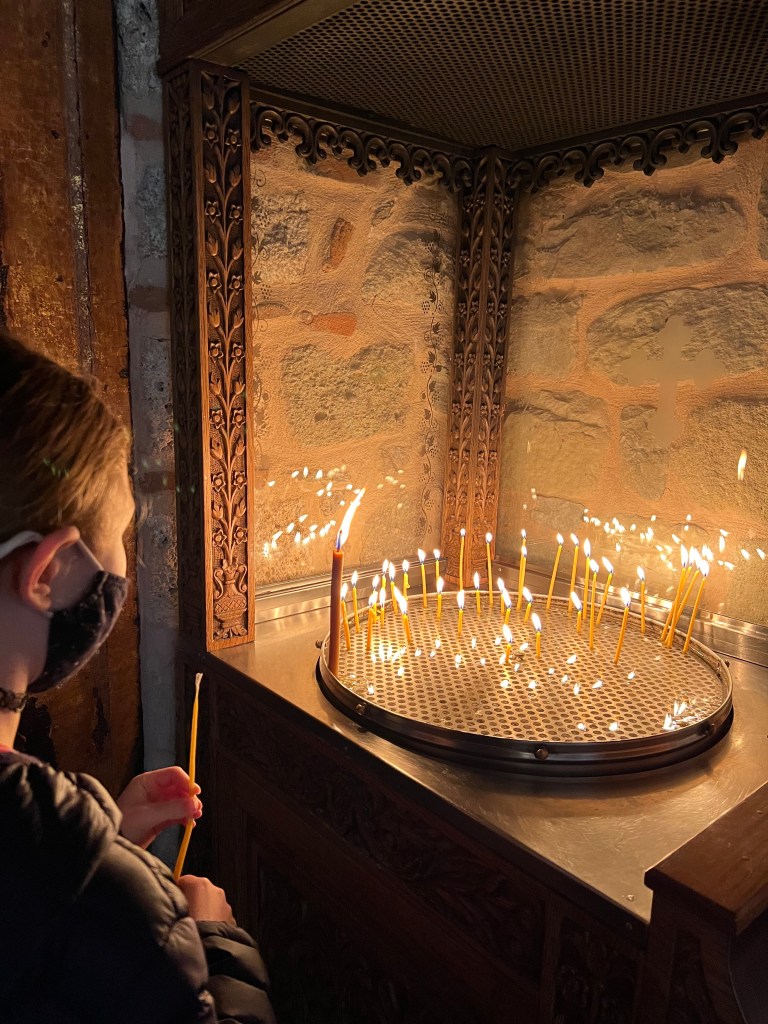 Starting at around 3pm the tour covers a lot of the history of the area as well as driving to most of the monasteries. We were lucky that it was very quiet when we were there and we had quite a lot of places to ourselves. We visited some of the original caves, one of the monasteries, an Orthadox church which was beautiful inside, stopped for photos at some of the amazing viewpoints and finished at a viewpoint for watching the sunset. Unfortunately there wasn’t a sunset the day we were there as it was too cloudy but because of that, where there could have been up to 200 people watching the sun go down, there was only 7 of us on our tour, 2 people in a campervan and a cat. The tour guide was incredibly informative and as it was a small tour the were flexible around the weather. The mini bus driver was also a great photographer.