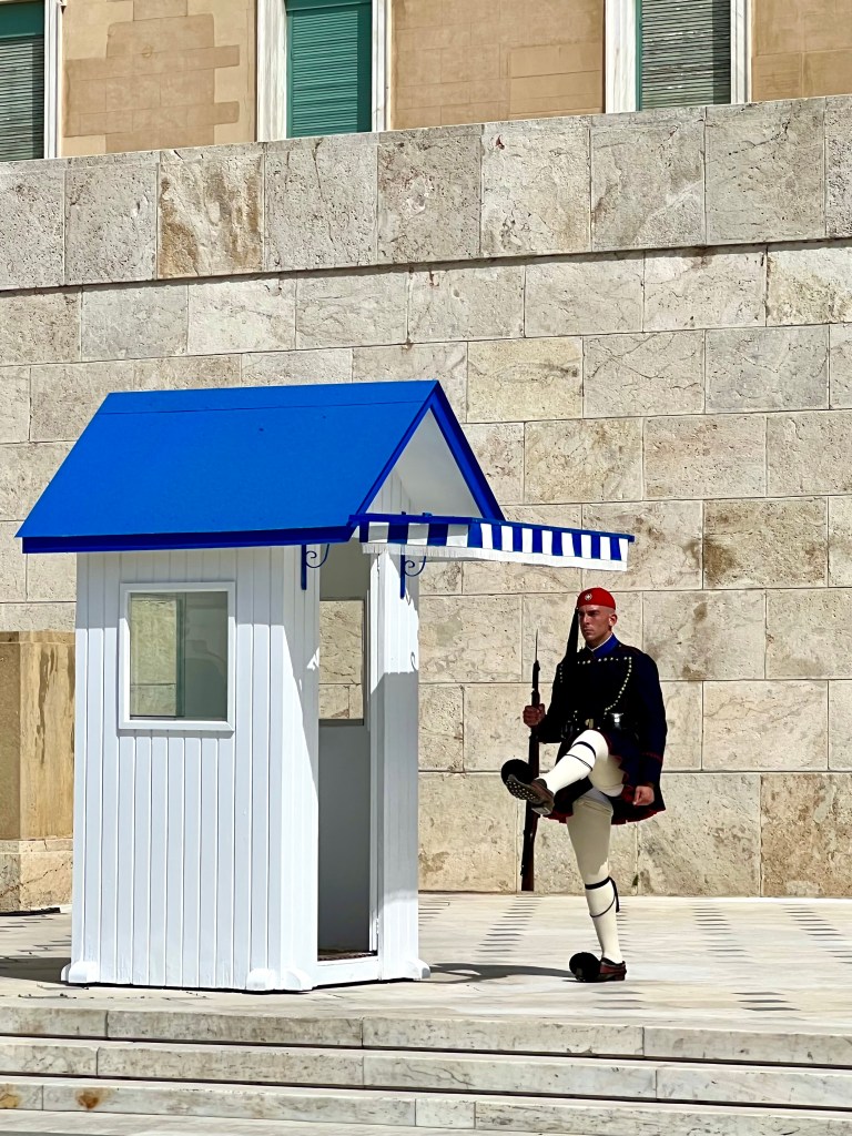 We started with the City Sightseeing Athens open top bus tour so that we could get a feel for the city. I always think that this is a great idea, especially with children as it saves lots of walking or having to navigate public transport. Our first stop was to see the changing of the guards outside of the presidential mansion and tomb of the unknown soldier. Watching the guards is a brilliant experience, they change every hour and the marching and ceremony is amazing to watch.