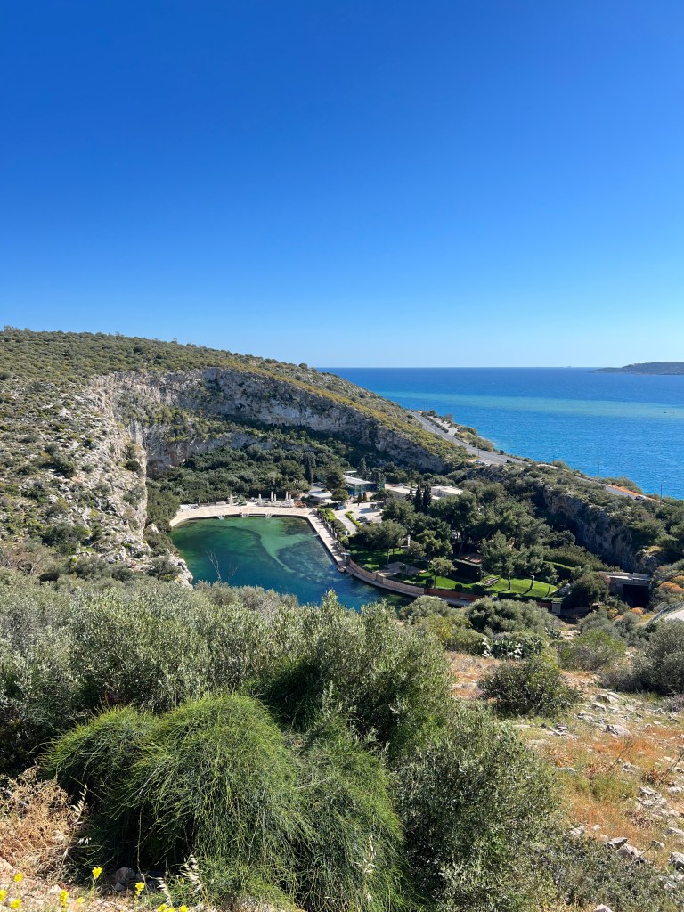 We had lunch over looking the sea and then stopped at Vouliagmeni Lake. The lake is a thermal lake and you can swim in the warm waters, it was closed for reburishment when we went so we walked some of the trails above the lake and watched the windsurfers on Vuliasmeni bay. Our last stop was for ice cream on the way home.