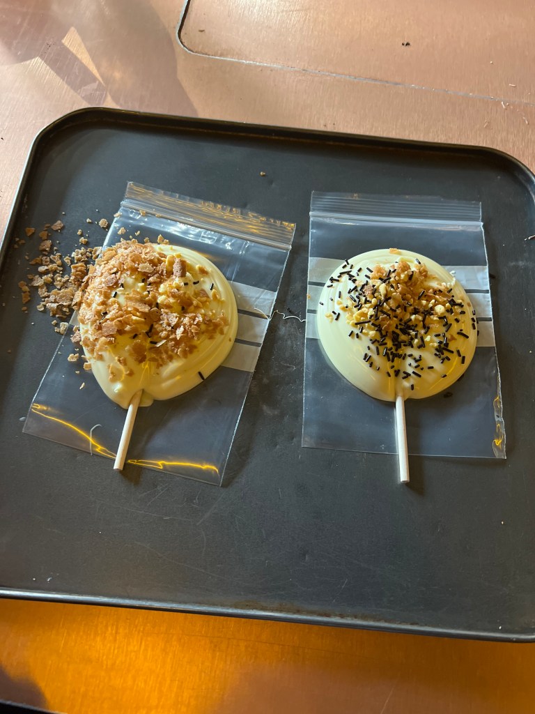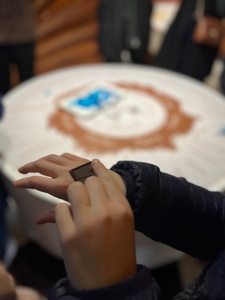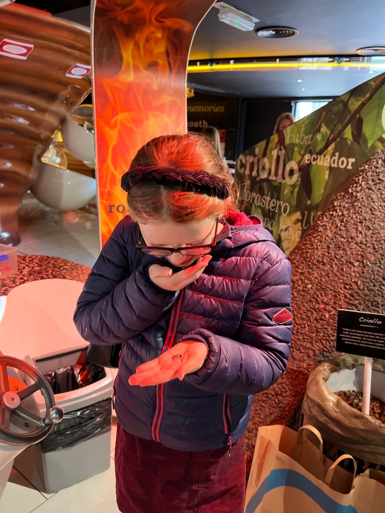 We really enjoyed the tour and thought it very child friendly. Groups are small and there was a mixture of adult couples, family groups and family’s with young children. The tour takes about an hour but is split in to different rooms and activities to hold interest. Pip’s favourite part was the chocolate tasting and making her own chocolate lollipop at the end.