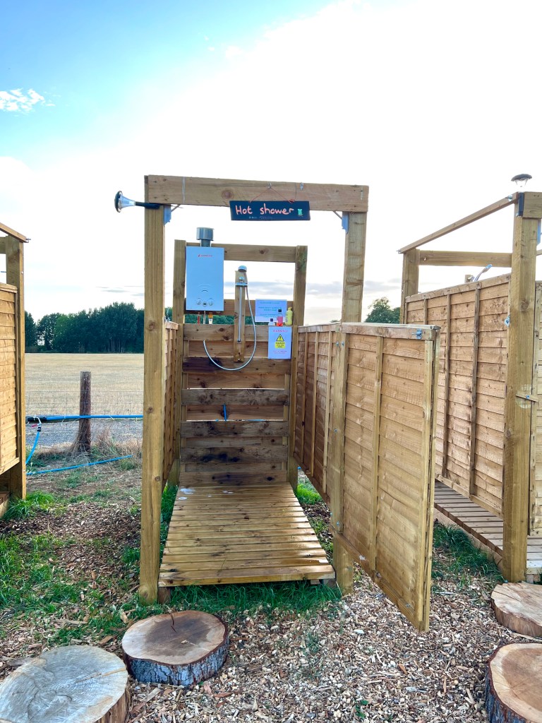 As it is a pop up campsite the facilities are semi permanent and basic but everything you could need. There are three unisex compost toilets, 2 hot showers and a cold shower and a washing up area.