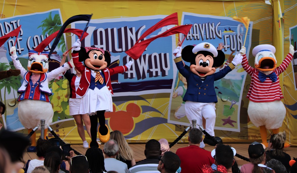 Sail Away Party – This party is held on deck as the ship leaves port, the horn sounds and Mickey and Friends celebrate setting sail. Disney do an excellent job of getting everyone in the right mood for setting sail. Also listening to the Disney themed ships horn really does signal that the magic has begun.