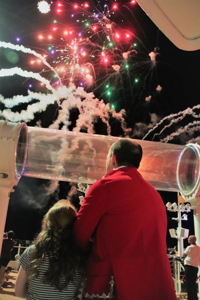 Fireworks at Sea – This is a later show after the second dinner sitting and once it gets dark up on deck. Disney is the only cruise company to have fireworks at sea and they were really spectacular, there is also a short show that includes Captain Jack Sparrow abseiling off the funnel. The fireworks are on one side of the ship so it is worth checking with team members which side it is so that you can get the best view.