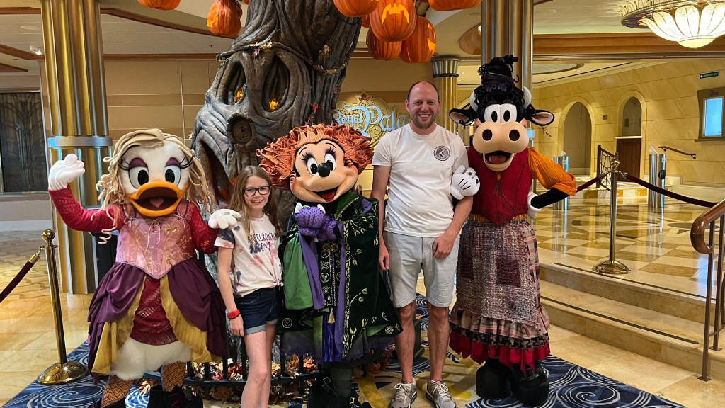 Halloween on the High Seas – This was our Halloween day so once we were back onboard ship it was time to get in to our Halloween costumes. There was trick or treating in Cabanas and then Mickey and friends danced and sang in their Halloween costumes out on deck. There was also an opportunity to have photos around the ship with the characters in their costumes and some special characters like the Sanderson Sisters (Minnie, Daisy and Clarabelle) and Jack and Sally-Anne.
