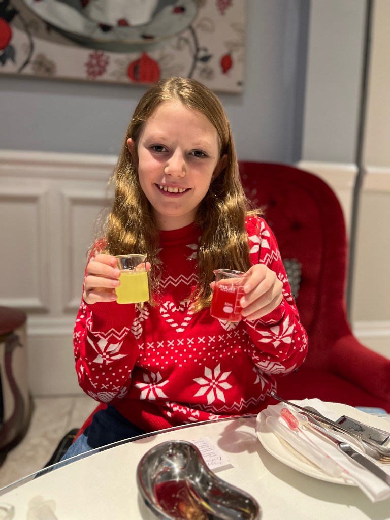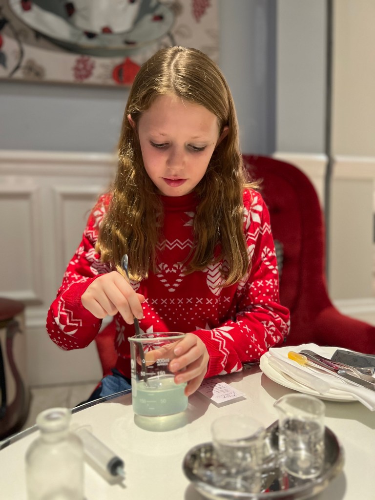 The afternoon tea is a real experience. We started with a science experiment by making our own flavoured lemonade with the test tubes and ingredients provided.