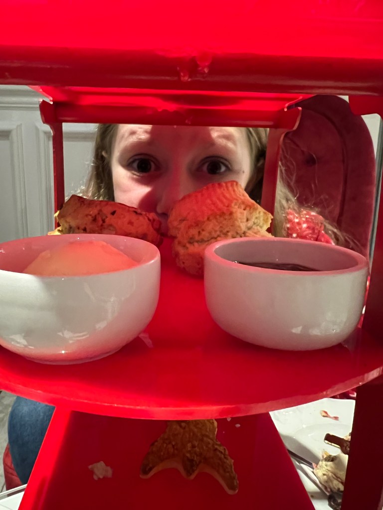Completely child friendly! The atmosphere was relaxed, there was several groups of adults having afternoon tea while we were there but there was also family groups with children of all ages. The set up and layout of the room meant that there were lots of tables chatting so I didn’t feel that we had to whisper and make sure Pip stayed quiet. She was completely engaged by the afternoon tea and making all the different elements kept her busy and in her seat.