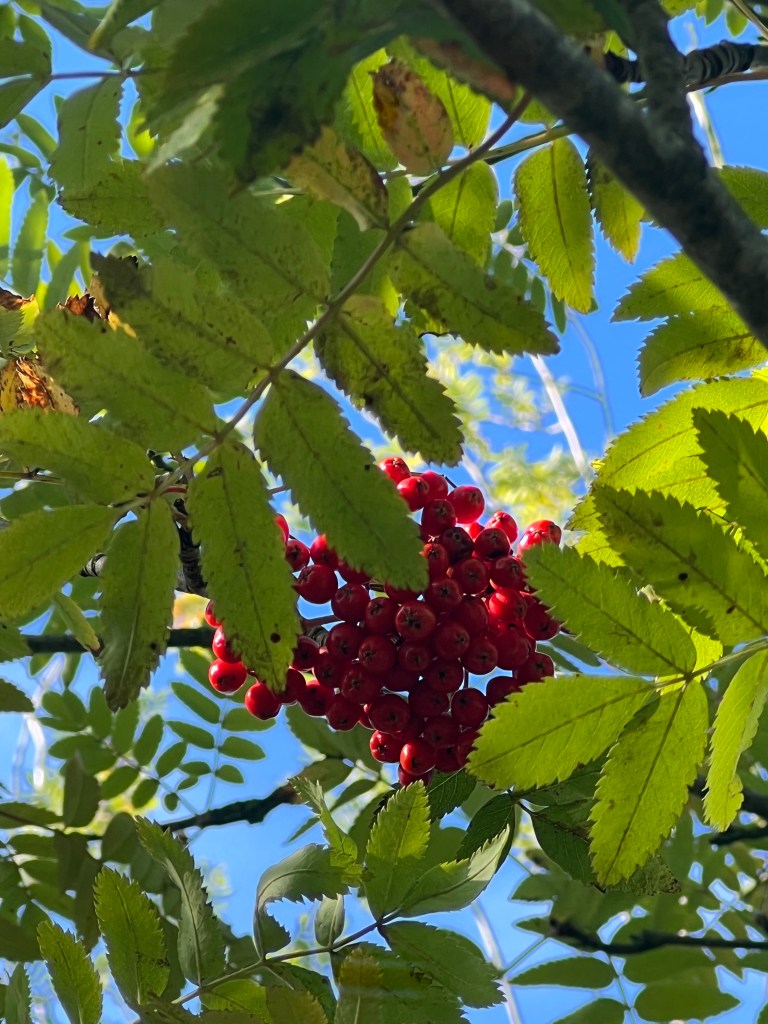 While the cinnamon rolls were baking we went on a foraging walk with Renuka, she pointed out various edible leaves and berries and explained the medicinal benefits of them. As a group we gathered a selection of things for making a herbal tea back at basecamp. Despite it being September we still managed to find lots of edible things in the woods and had some interesting discussions about some of the mushrooms that we found.