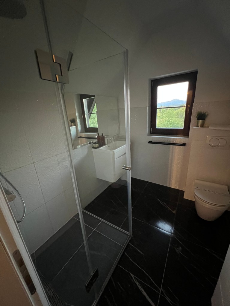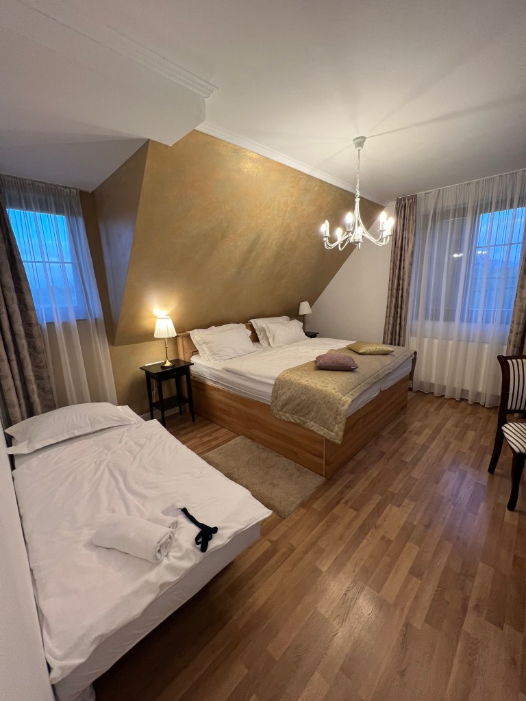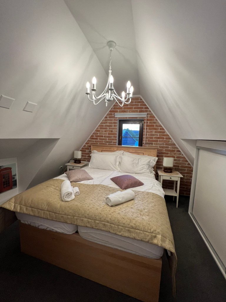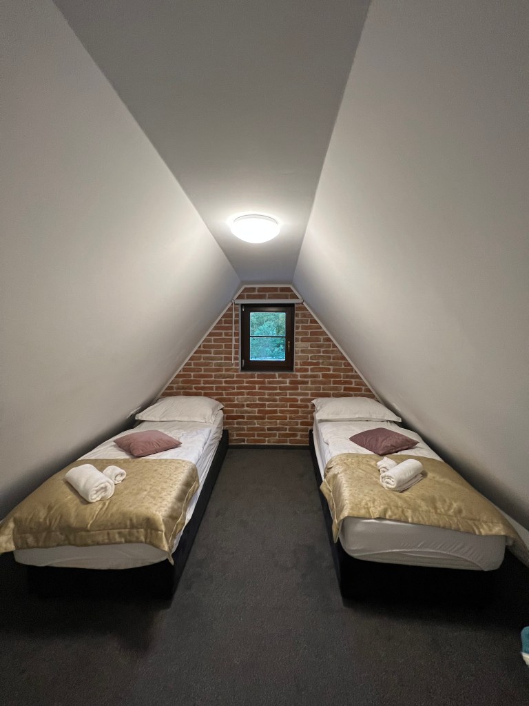 The hotel is one of two accommodations on the same plot of land although they are completely separate residences. B&B Plitvice Falls Cottage has 7 rooms of various configurations so they can accommodate families of various sizes. We had a triple room for me Andy and Pip and the the Attic family suite for the other family of 4 that we were with. The attic suite actually has 2 separate bedrooms and a living space and actually sleeps 5 as it has a day bed in the living area.