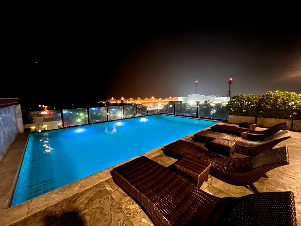 There is a pool on the roof overlooking the airport which unfortunately we didn’t get the chance to try out. It looked like there used to be a bar on the roof top as well but that is not operating at the moment.