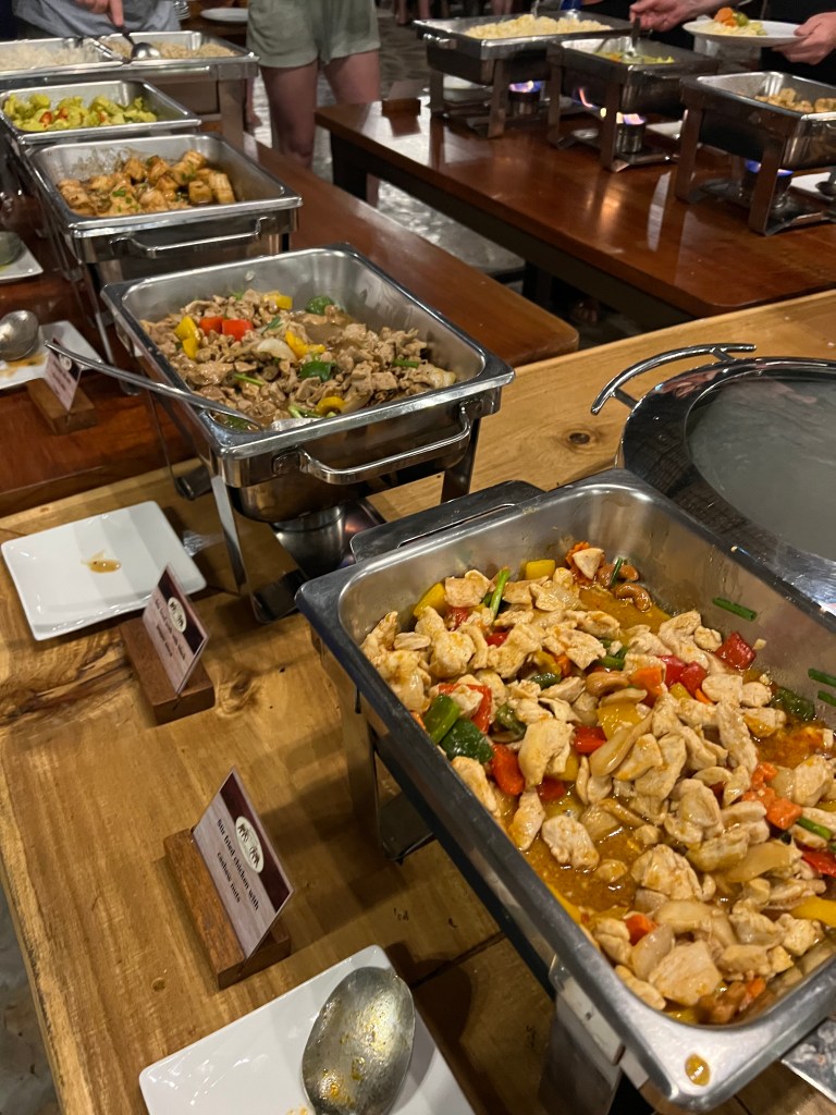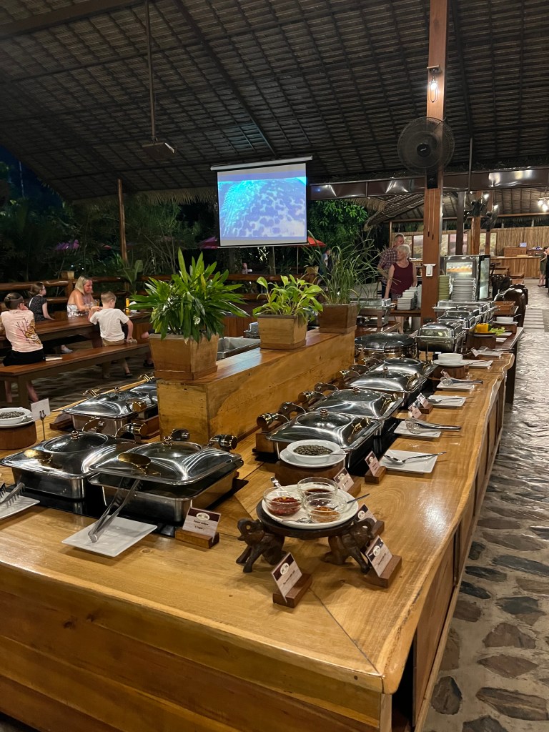 The food on camp was out of this world and plentiful. Breakfast, lunch and dinner are served buffet style and all start with the sounding of the gong which can be heard from everywhere on camp. There is a huge selection of Thai dishes, salads, vegetables, some western dishes including wedges and chips and a kids section with pizza and more kid friendly dishes.