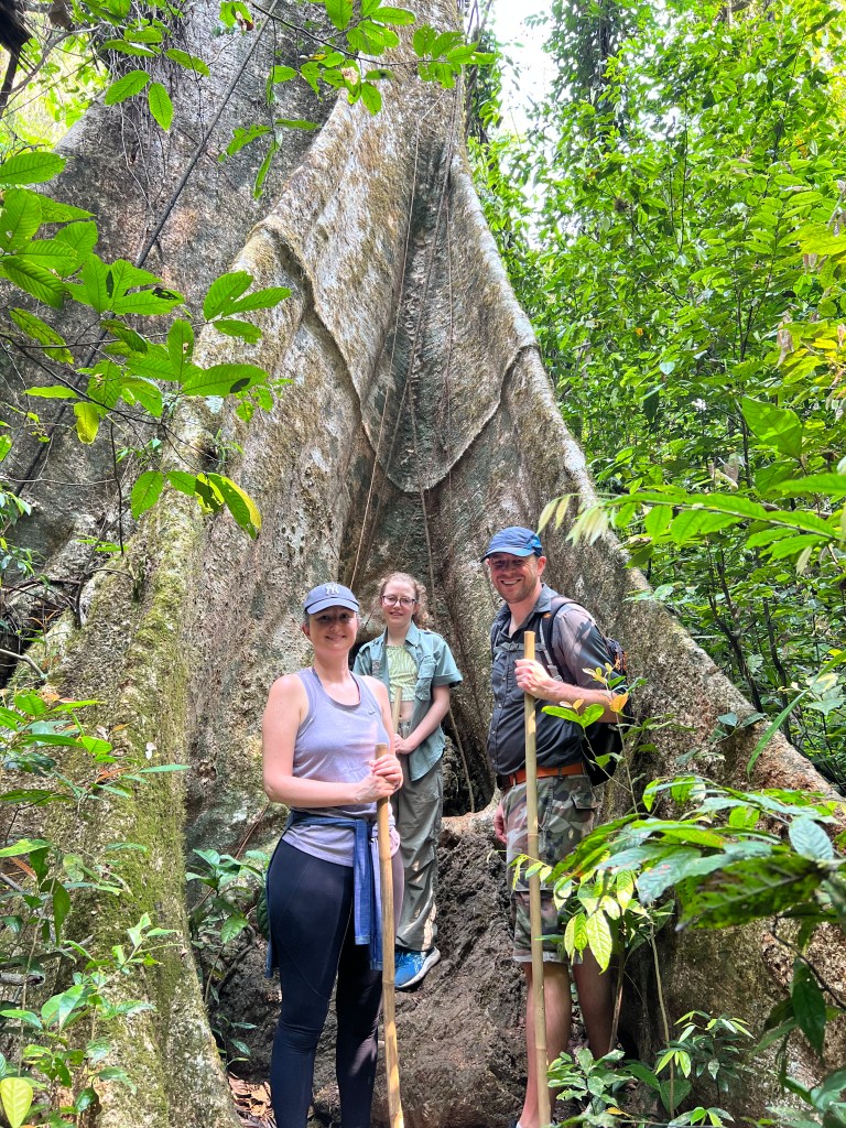After breakfast we started packing up our tent and prepared ourselves for a hike in the jungle. The hike starts at the river at the bottom of camp with a very quick canoe crossing. Our guide started by pointing out which plants not to touch because they are poisonous (a bit like poison ivy) and telling us not to put our walking poles in any holes because we might wake up sleeping scorpions, and finished with saying ‘actually just don’t touch anything’!