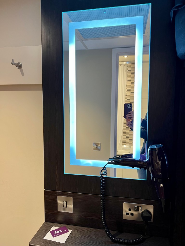 The hotel is laid out over 26 floors with the top 4 floors being premier plus rooms. We had a room on the 8th floor with a double bed and a single bed for Pip. As is always the case with Premier Inns it was very clean and comfortable and it was everything that we needed for a comfortable stay.