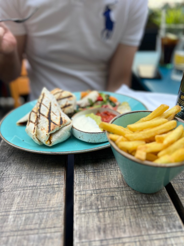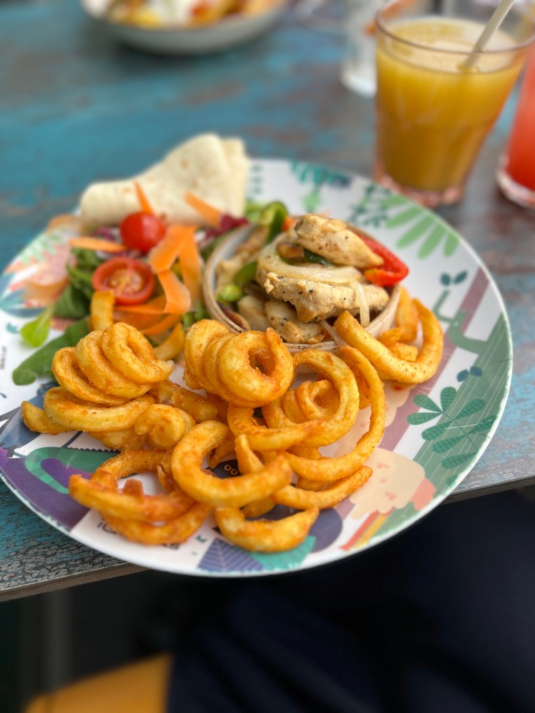 I had the mushroom fajita stack and Andy had a beef burrito. Pip decided to eat from the children’s menu and went for chicken fajitas which also came with a side of chips and a dessert and drink. I was impressed by the number of vegetarian and vegan options on the menu.