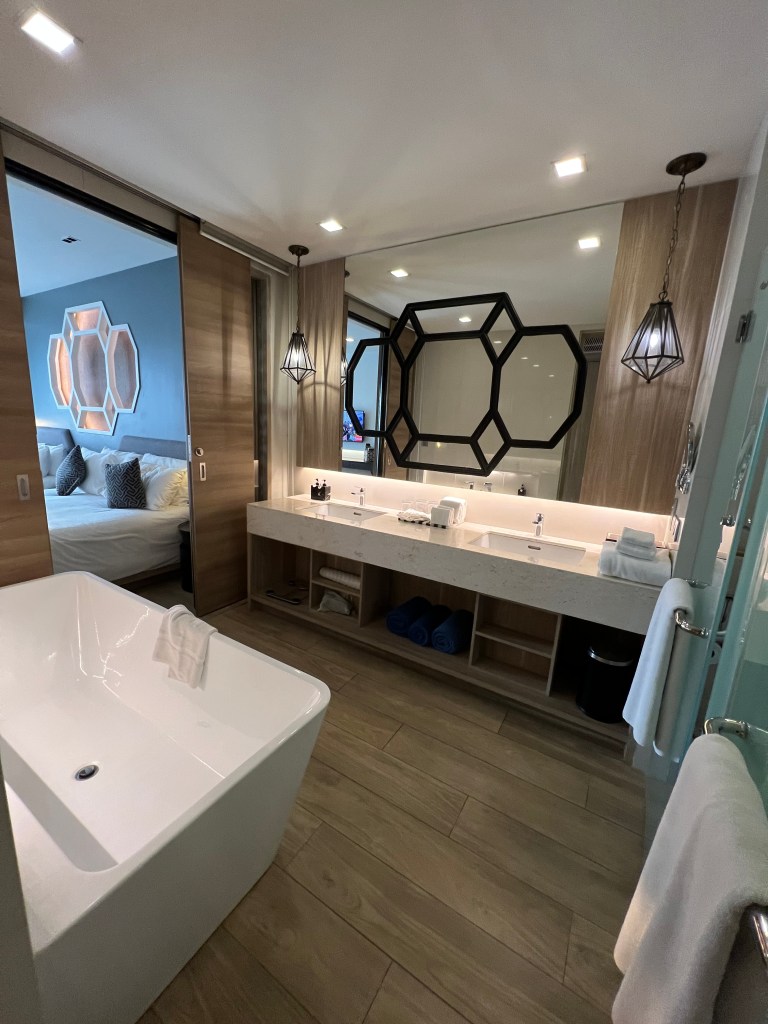 The bathrooms in both rooms were huge with a bath and shower, separate toilet and two sinks.