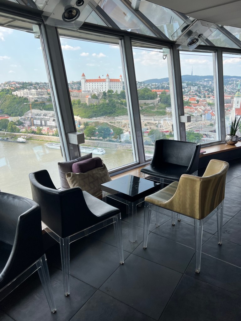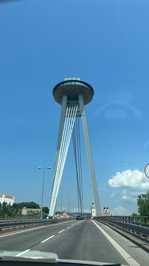 Driving in to Bratislava from the airport you cross over the Danube and pass under what looks like a UFO on legs in the middle of the bridge. You can actually visit the UFO as it has a lift in one of the legs, an observation deck at the top and even a restaurant and bar.