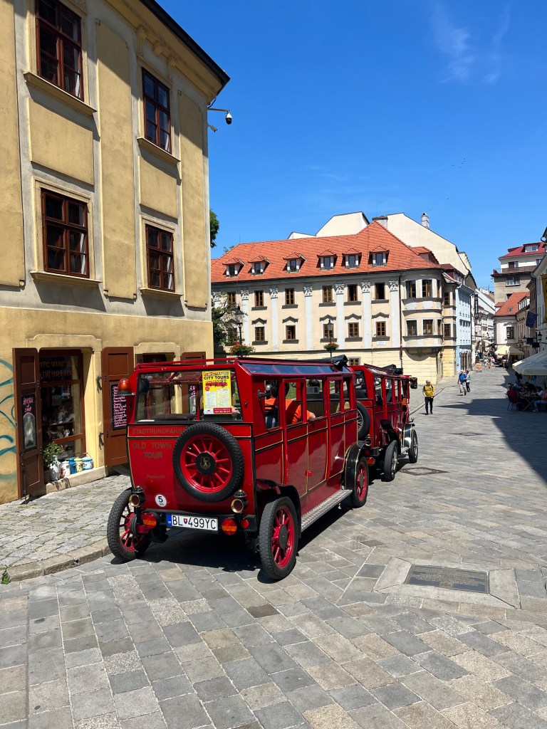 Tour4U runs a variety of tours around Bratislava in various fun looking vehicles. The old town is car free so the tour of the old town is in tiny vintage buses that can just about squeeze down the tiny streets. It was a great way to get an overview of where everything was in the old town and a summary of the town’s history. The bus has an audio guide that has the option of an incredible number of different languages. The driver, who spoke very little English but was so lovely, set everything up for us with our headphones and then offered to take a photo of us. The little bus only seats about 6 but they do have a trailer that they can hook up during busier times for more capacity. As the bus drives around it stops at the main points of interest and the driver pointed us to what our audio guide was telling us about. The tour takes about 35 minutes and there are also options for other tours, we bought tickets on the day but at busier times it would definitely be worth booking ahead.