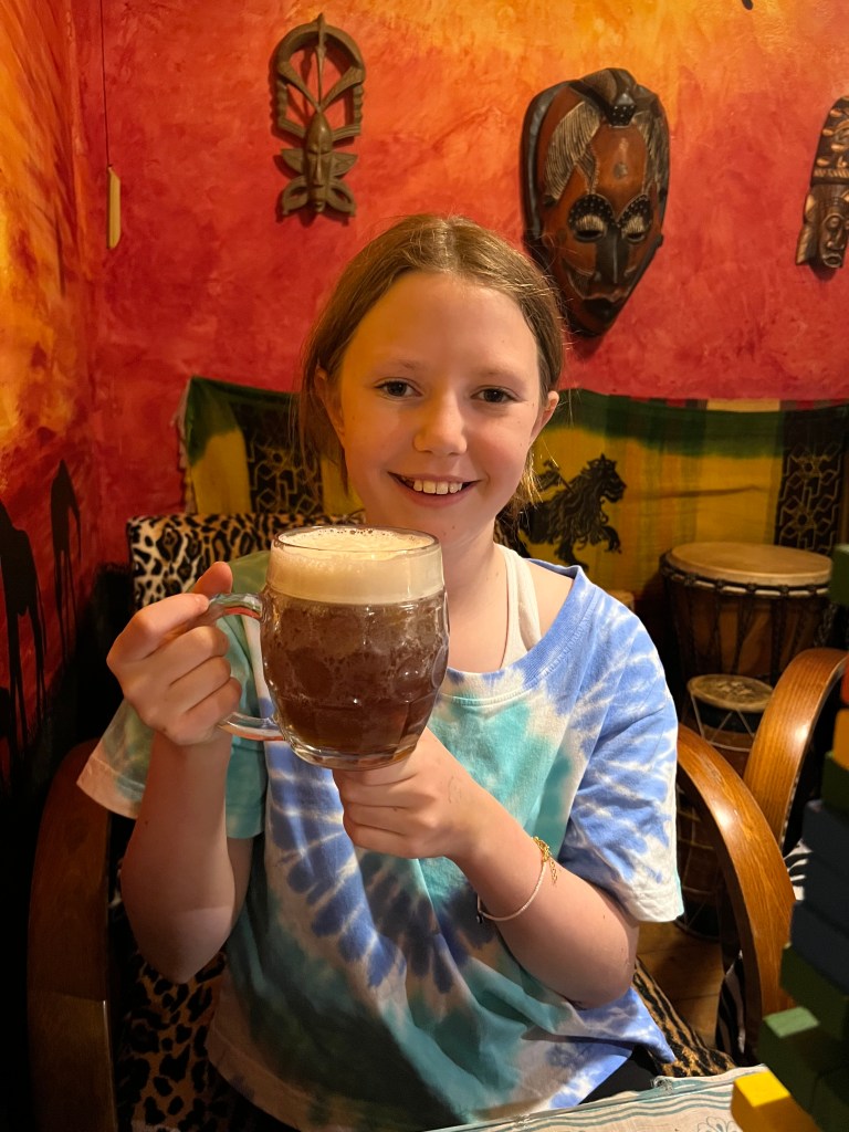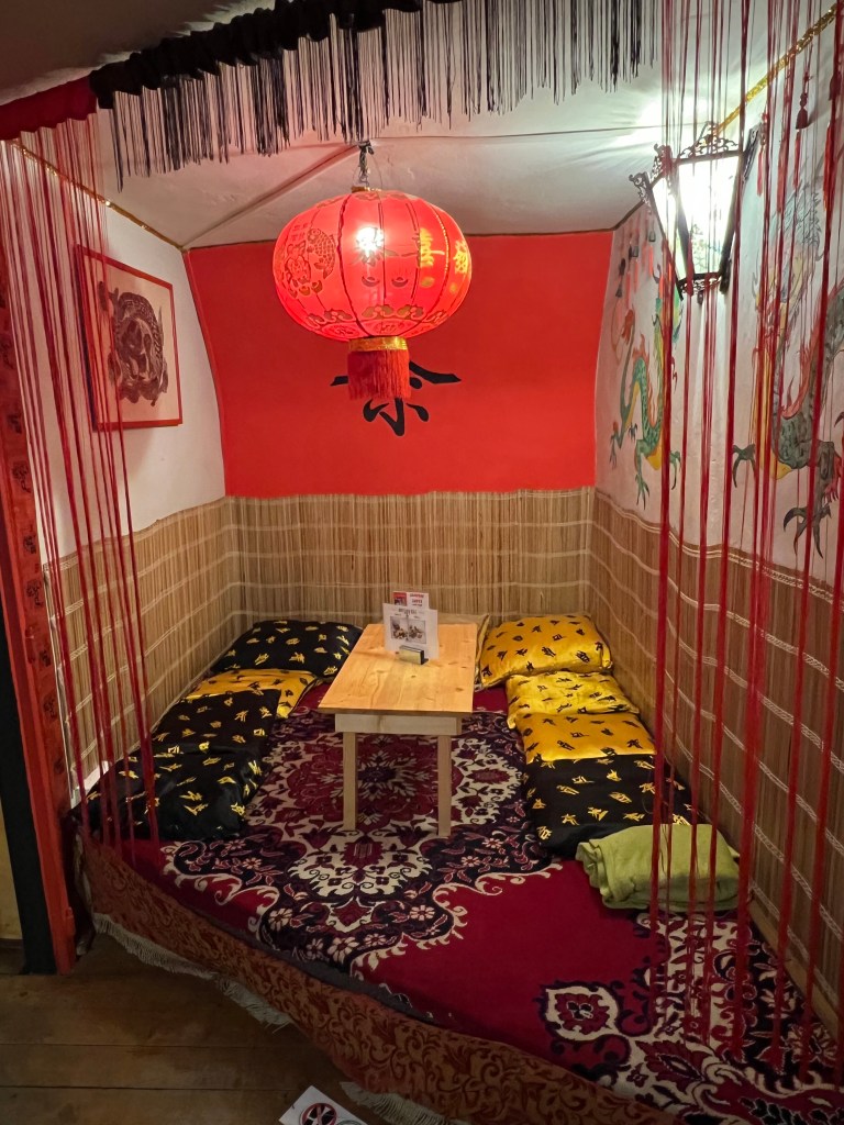 We heard that there was a tea room in an underground air raid shelter and we immediately put it on our list. Set out in a number of smaller rooms, it’s fun and quirky. Each room and seating area is themed around a different country and as it was almost empty when we went we were able to to really think about where we wanted to sit, we went for the Masai Mara seats. The tea menu is vast, hot and cold teas from all around the world. Andy and I weren’t very adventurous and went with traditional English Breakfast tea and Earl Grey but Pip decided to go for tea beer (not actual beer) which was a bit on an acquired taste.