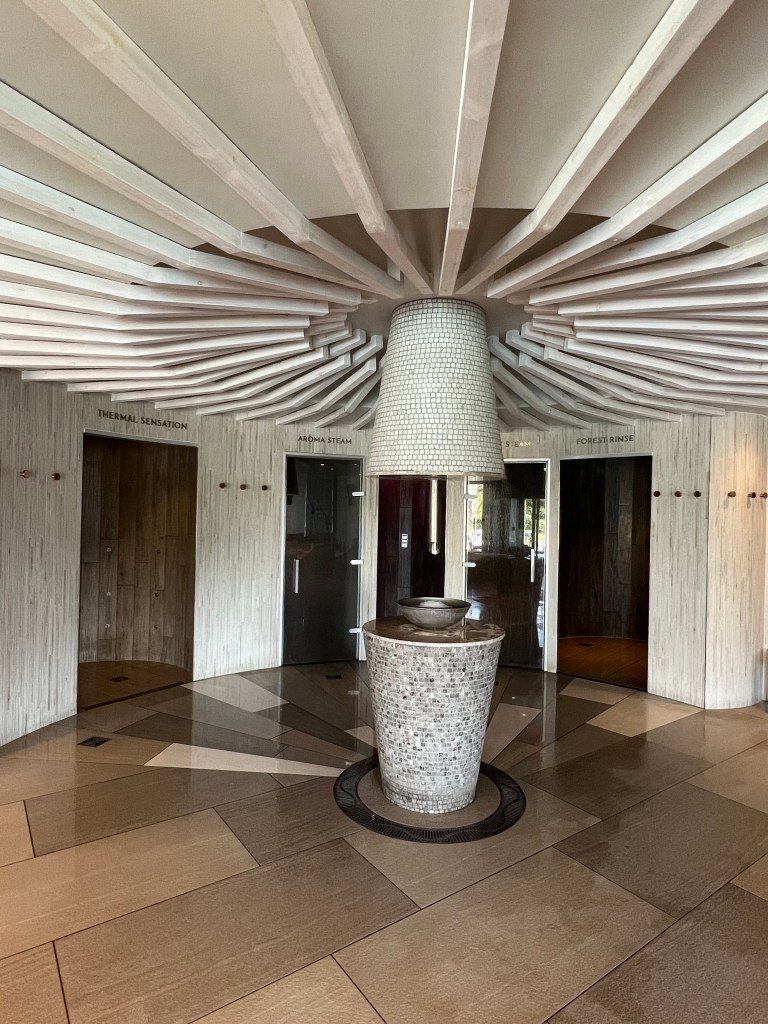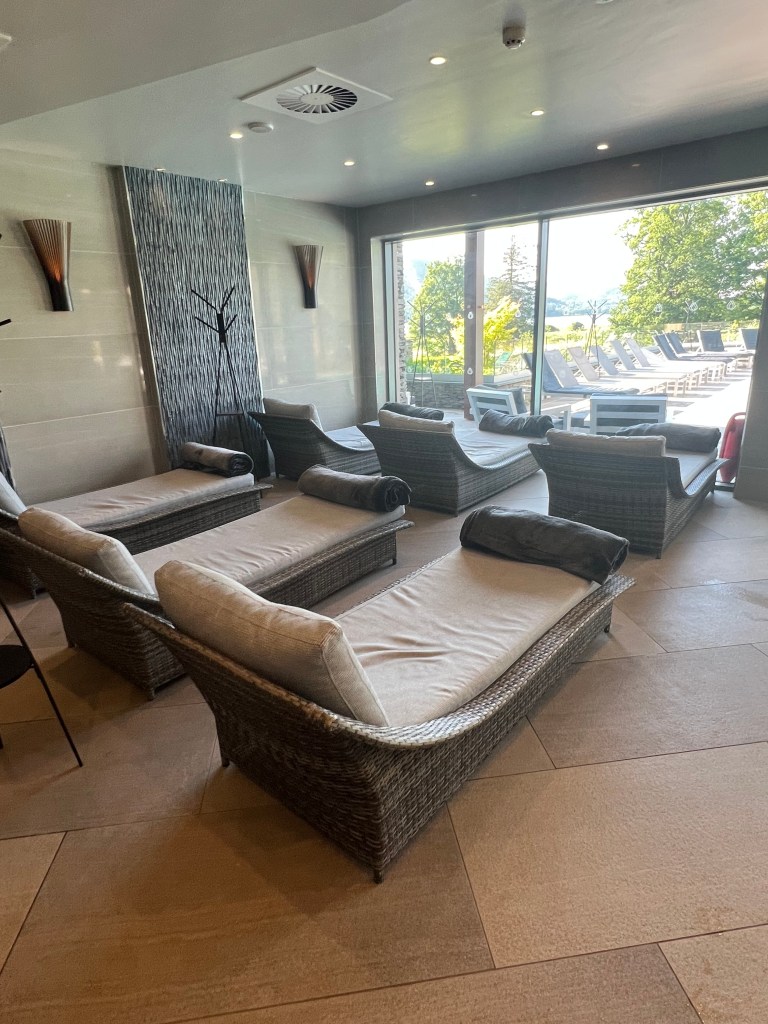 The spa consists of an outdoor pool with several different areas with different jets and bubbles. The pool has a fantastic view of the lake and is one of the warmest outdoor pools I have ever been in. There are sun beds around the pool and and outdoor Finnish sauna and cold drench bucket.