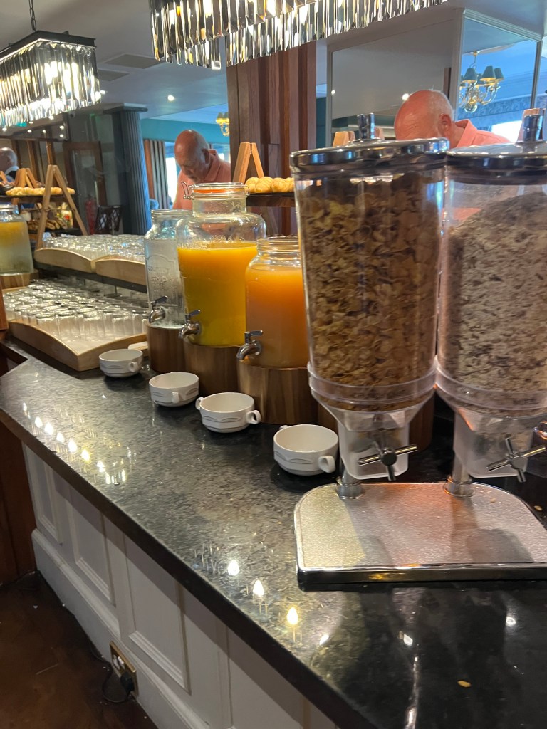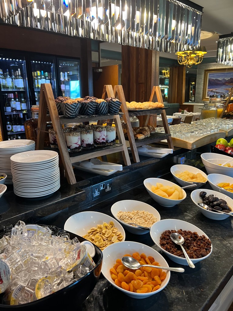 Breakfast is served in the Lake View Restaurant, there is a breakfast buffet of fruits, yogurts, cereals and pastries and a selection of cooked food to order from the menu as well as teas and coffees.