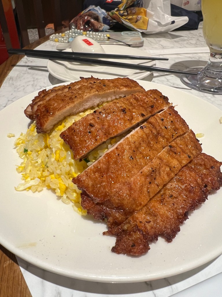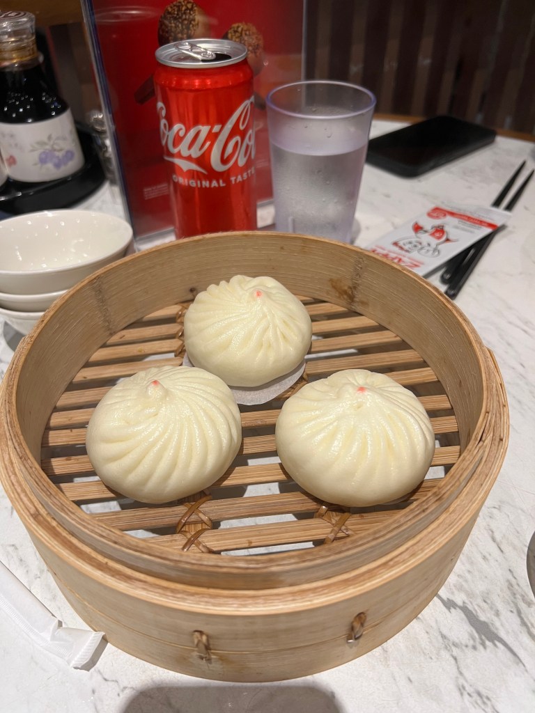 This was our favourite place to eat, not just for the delicious food but also because we were shown to our table by a robot! The menu is a selection of noodle dishes, dumplings and steamed buns. Pip has fried rice and pork, Andy had a hot and sour soup and I had steamed vegetarian buns, all completely delicious.