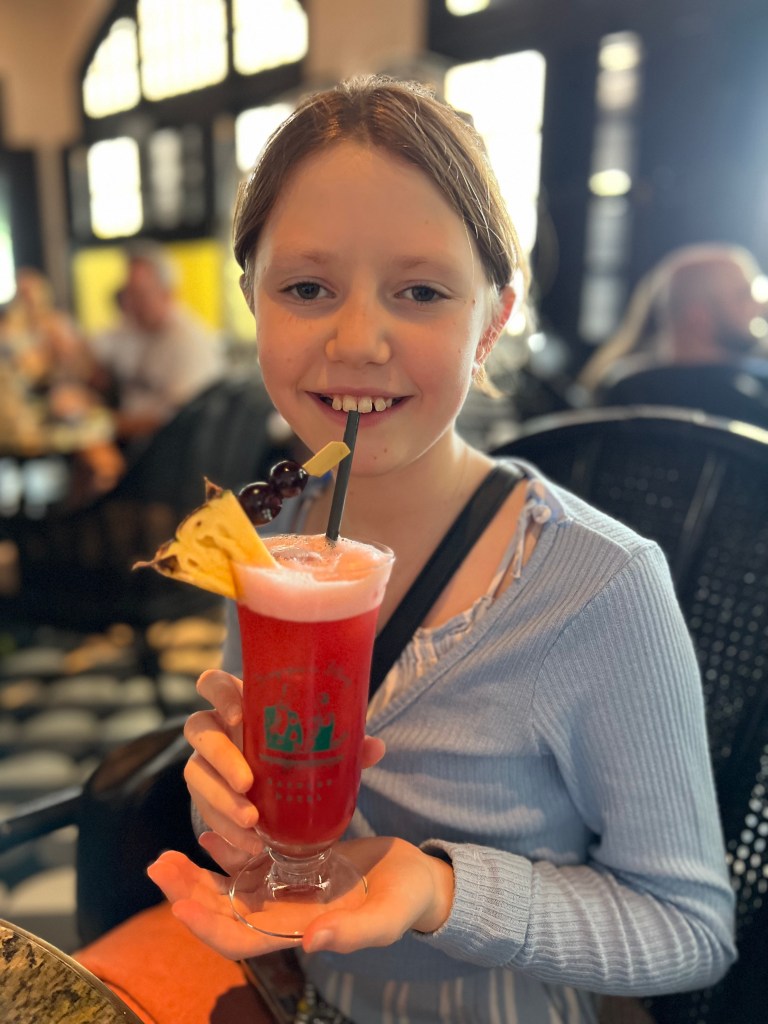No pre booking needed, you can turn up at anytime and queue to get in. Children are welcome and Pip loved the fact that it is traditional to shell the peanuts that are on your table and then throw the shells on the floor. We tried a Singapore Sling which was very strong and also the non-alcoholic version which was delicious. Other alcoholic and non-alcoholic drinks are also available.