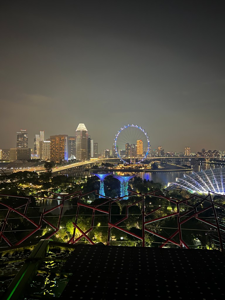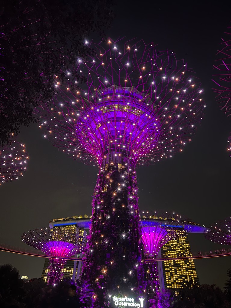 We also had tickets for the viewing platform at the top of the main tree in Supertree Grove and we waited until after the light show to go up which meant that it was much quieter and we also had a wonderful view of Singapore at night including the Singapore Flyer and Marina Bay Sands Hotel. There is also a walk way between 2 of the trees but that was a separate ticket and I imagine the view is very similar so you probably don’t need to do both.