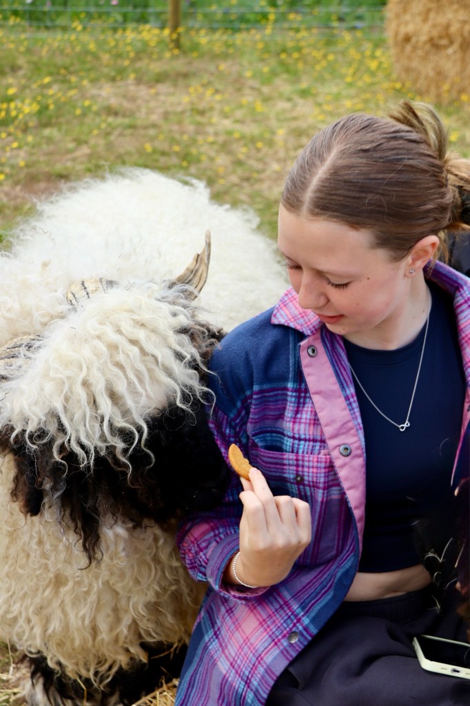 The sheep are Valais Blacknose Swiss Sheep and are very fluffy and very friendly! They’ll be your best friend for a ginger biscuit which is lucky because if you book a Meet the Sheep session, you will be given a cup of broken ginger biscuits to share* with your sheep. The Meet the Sheep session gives you half an hour in your own pen with a couple of sheep to either just hang out or take selfies with.