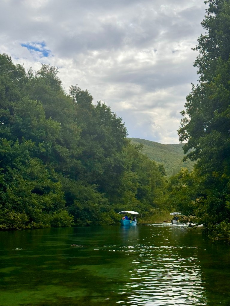 We started our visit with a guided tour of the monastery which was a nice way to get a bit of historical context for the monastery and the history of religion in North Macedonia. We then visited the spring head of St Naum which is a tiny lake that feeds Lake Ohrid, the crystal clear water comes from numerous springs including some underwater springs that you can see bubbling up from below the water. Motorised boats are not permitted on this part of the lake and instead you can take a guided row boat to see the spring head. The tour finished with lunch (not included in the price of the tour) at the restaurant overlooking the spring head lake at Restaurant Ostrovo.