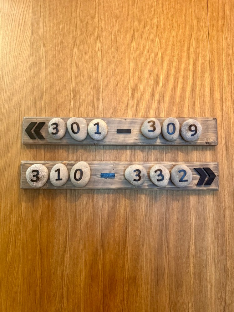 It has a clean, beach vibe with some lovely little touches like the fact the room numbers are painted on pebbles outside each room.