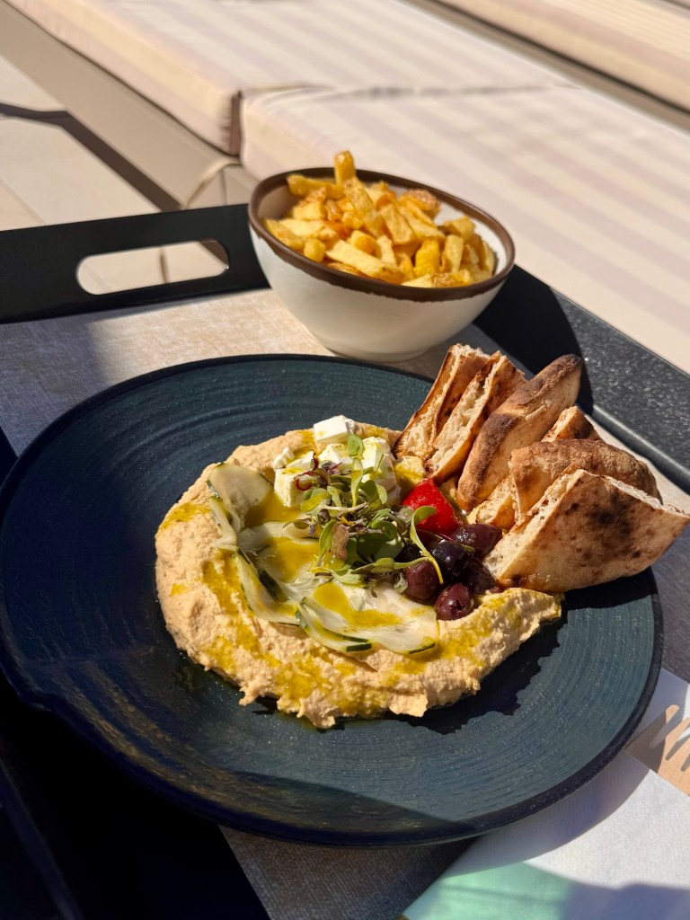 During the day there are pool bars both at the main pool and roof top pool serving drinks and light snacks. We went for a hummus plate and mocktails which were delicious!