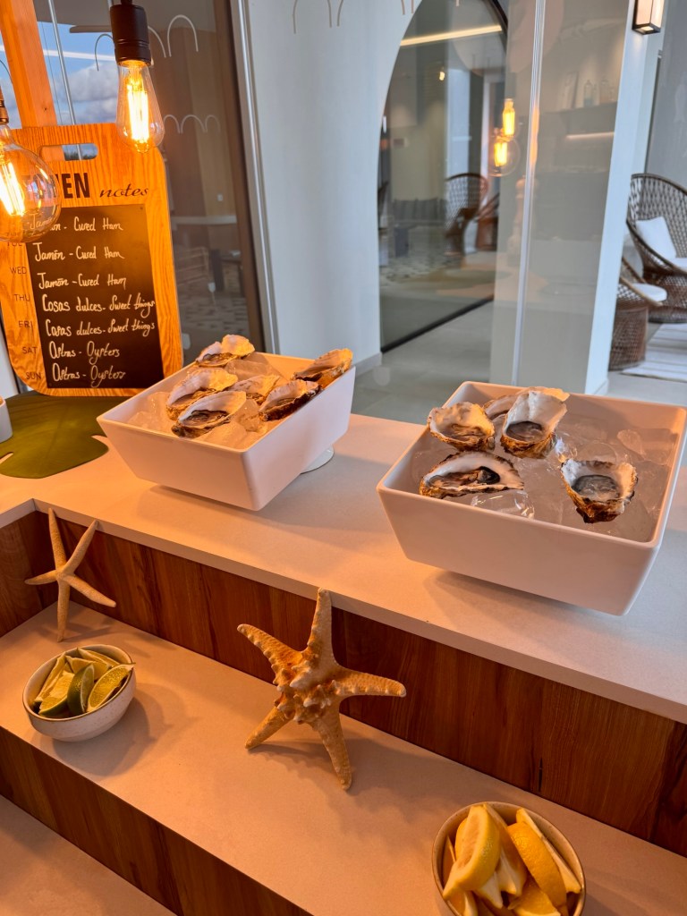 The hotel serves a buffet style breakfast in the mornings. There is the standard pastries, fruit, cereals and bread as well as hot food and an omelette station. There is also a station which has a rotating theme, while we were there the were sweets and cakes and oysters and champagne.