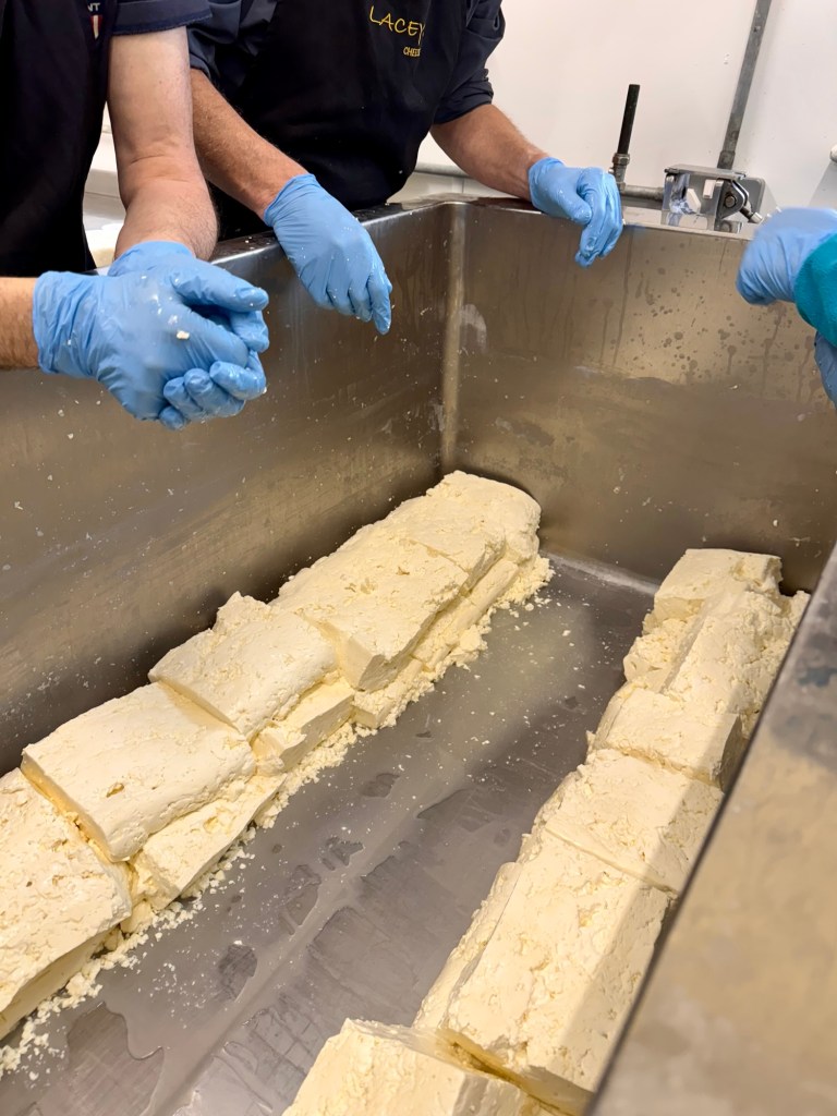 The day runs from 10am until 4pm and starts with a huge vat of milk and ends with wheels of cheese. In between there is plenty of hot drinks, some science and quite a lot of hard work. The day is very hands on and with a group size of a maximum of 8 people there is plenty of opportunity to have a go at all the stages of cheese making. There’s also lots of opportunity for asking questions and indulging your inner cheese making nerd.