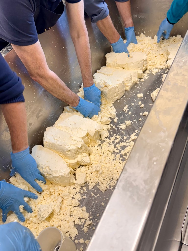 We got to do everything from the titration test to check that the bacteria levels in the milk are just right, adding the rennet, cutting the curd and stacking to putting the cheese in the wheel molds. We also got to wax some cheeses to take home with us.