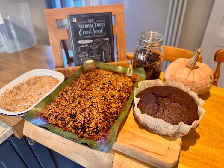 I spent Sunday cooking (like a bear preparing for hibernation) so we are now fully stocked up on granola, cake and chilli. I also welcomed Pip and Andy home with a roast dinner. I still need to find time to turn the pumpkins in to soup though, maybe that’s a job for next week!