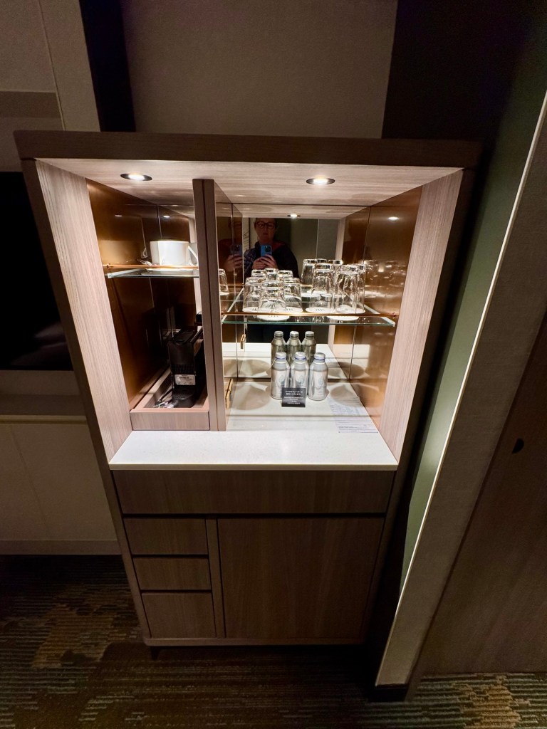 The room was comfortable and we had a drinks station and fridge so we had somewhere to put our 7Eleven goodies and the option to make hot drinks.