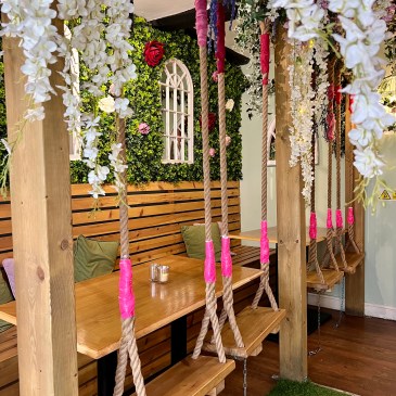 Rainbow bagels and pancakes in the Garden room on a rope swing, Plush Cafe is a lot of fun, very instagrammable and the food is delicious. … More Plush Cafe, York